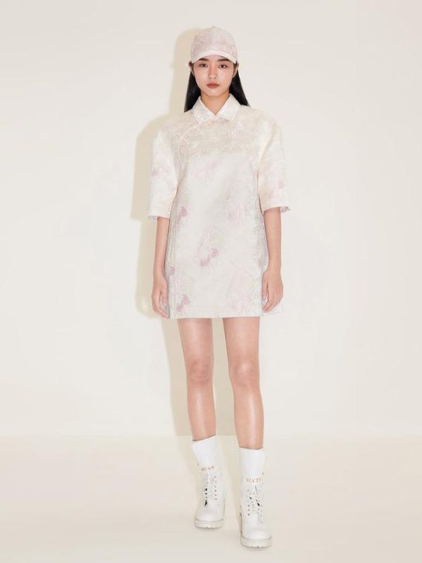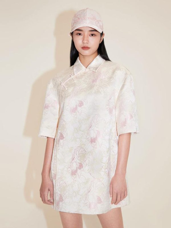 Delicate retro jacquard fabric presents a vivid three-dimensional effect, and the meticulous fiber combination gives a soft and comfortable feel, providing a superior wearing experience. The new Chinese-style cheongsam dress design, with imitation jade buttons highlighting a dignified and elegant temperament, brings a festive atmosphere to the upper body, showcasing the charm of traditional Chinese style in every movement.