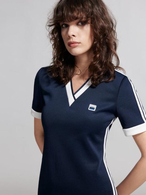 Carefully selected high-quality cotton fibers and polyester yarns are used in this fabric, featuring a special wheat air layer design that enhances its fluffiness and lightness. The fabric’s surface has clear grain patterns, even and delicate color, and a soft and smooth texture, providing excellent comfort and structure when worn. The simple V-neck design complements the sensual collarbone contour, exuding an elegant and graceful charm. The matte texture and high-quality white and blue contrasting colors perfectly complement the garment, enhancing its sophistication. With a slimming regular shoulder cut, the garment offers a sleek and stylish look, while the contrasting sleeve design adds a touch of vitality.