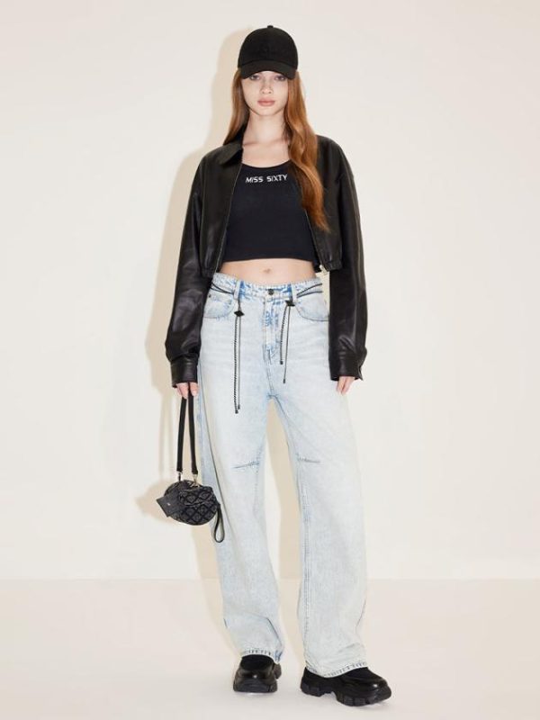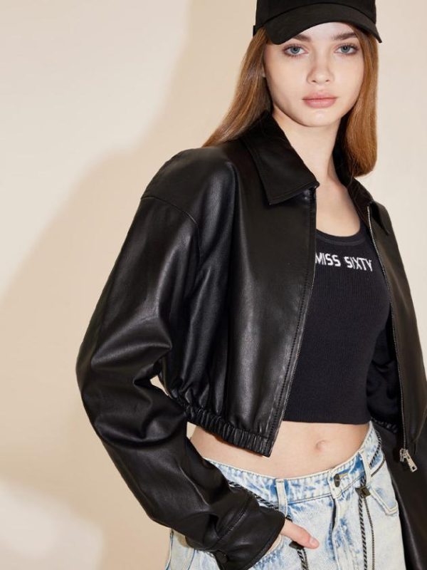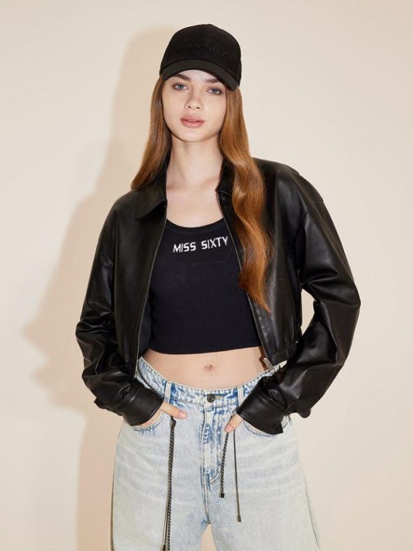 Miss Sixty Jackets & Outerwear | Women Vintage Black Motorbike Leather Jacket