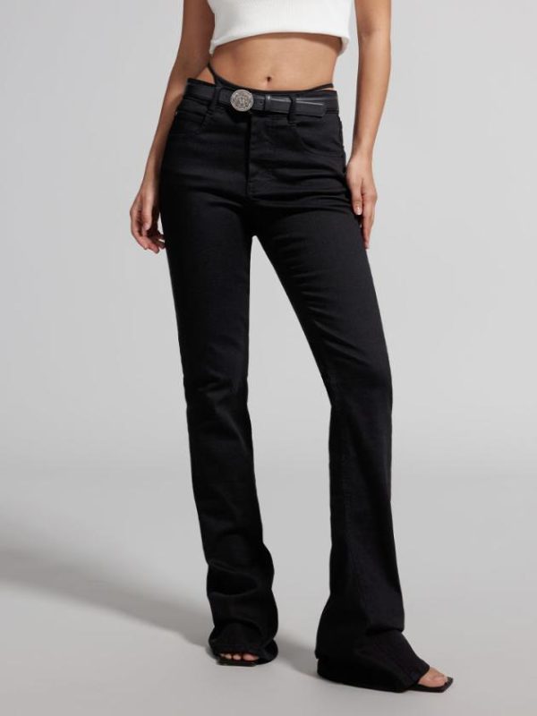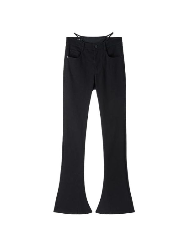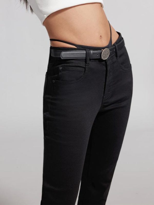 Carefully selected stretch denim fabric, with a rugged texture on the fabric surface, gives this garment a sturdy and stylish appearance. With a full and rich hand feel, it undergoes multiple processes, dyed in black through reactive dyeing, presenting a high-end vintage denim style. The pieced waistband design elevates the reconstruction of basic denim, upgrading it with a fashionable and sensual touch. Combined with V-shaped yoke lines and patch pocket design, it creates an uplifted silhouette, complemented by the textured leather patch for added depth. The retro-inspired and slimming horseshoe-shaped pants, along with the frayed edge design on the trouser legs, showcase a distinct and fashionable style in every aspect.