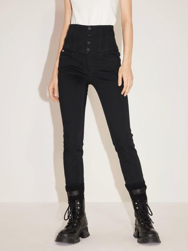 Carefully selected premium composite denim fabric, offering a soft and smooth touch with an ultra-soft fleece inner layer for warmth and comfort. The single-row four-button ultra-high waist design, combined with multiple panels, effortlessly shapes the waist and abdominal lines. The newly upgraded composite fabric with a smooth fleece underside ensures comfort without pressure. The streamlined slim fit effortlessly brings out a light and energetic look and leg contour.