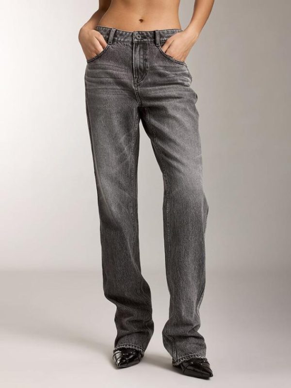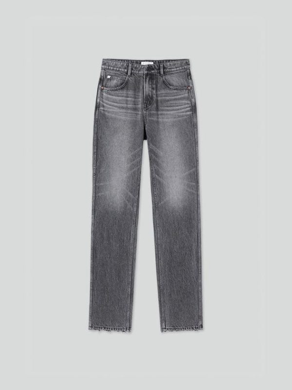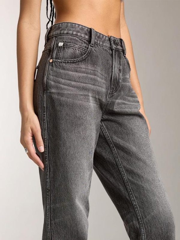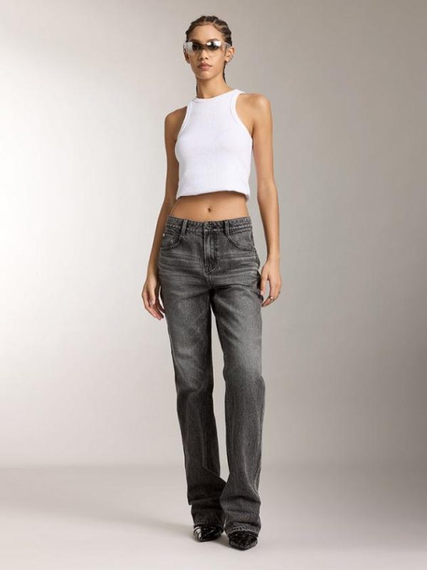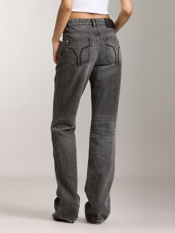 Carefully selected pure cotton black cowhide fabric with a tight and compact surface structure offers a soft and comfortable hand feel, with clear grain patterns. Enhanced by black-grey wash and multiple crafting techniques, each piece presents a unique visual appeal, interpreting the texture and versatility of denim in a vintage style. The comfortable mid-rise waistline is adorned with delicate whisker detailing, enhancing its retro allure. The buttocks-enhancing York seams combined with a black leather patch accentuate and uplift the buttocks, creating an alluring silhouette. The straight-leg cut, combined with meticulous distressing techniques, showcases individual effects, evoking the spirit of denim freedom.