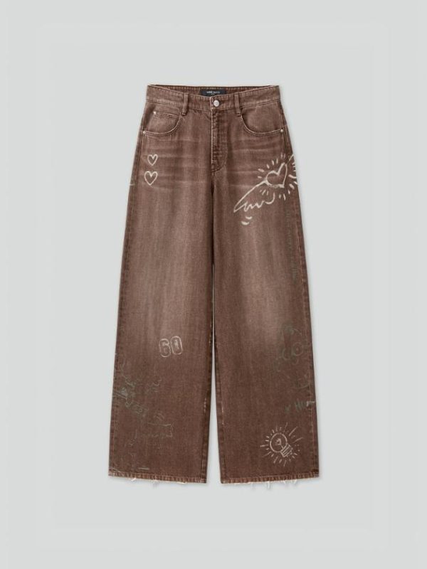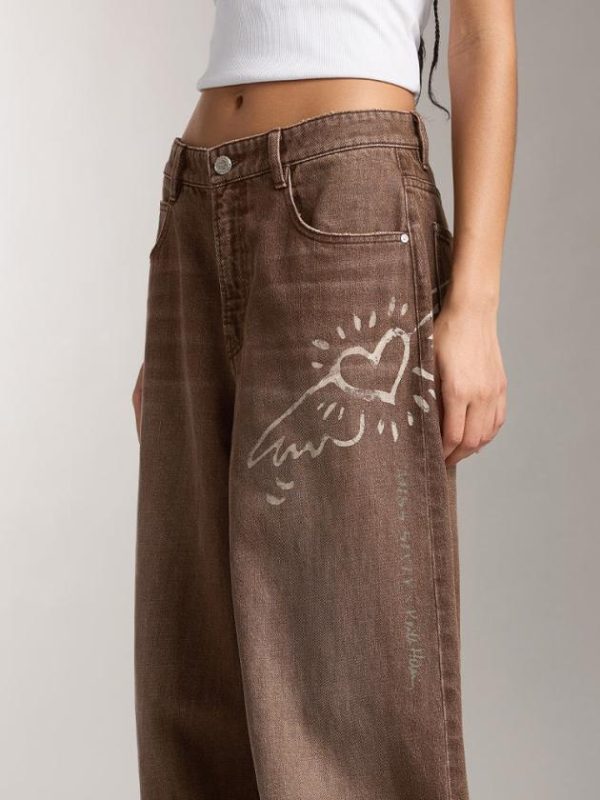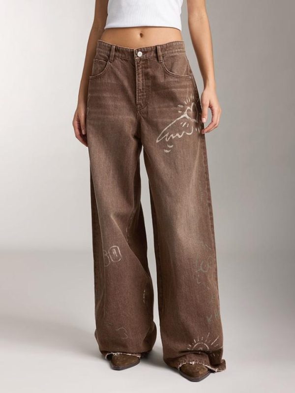 Crafted from premium cotton denim, this fabric offers a rich, textured feel with a pronounced slub pattern and clear twill lines, creating a structured, dimensional look. The garment is both comfortable to wear and showcases a vintage-inspired khaki wash with natural, vibrant color, making it easy to style. Featuring a comfortable mid-rise fit, the waistband includes unique distressed details, adding a distinct, edgy character to each piece. Cracked slurry print designs provide an artistic visual effect, enhancing the dimensional appeal. Hand-finished frayed hems express a rebellious, individual style, ensuring each item is truly one-of-a-kind.