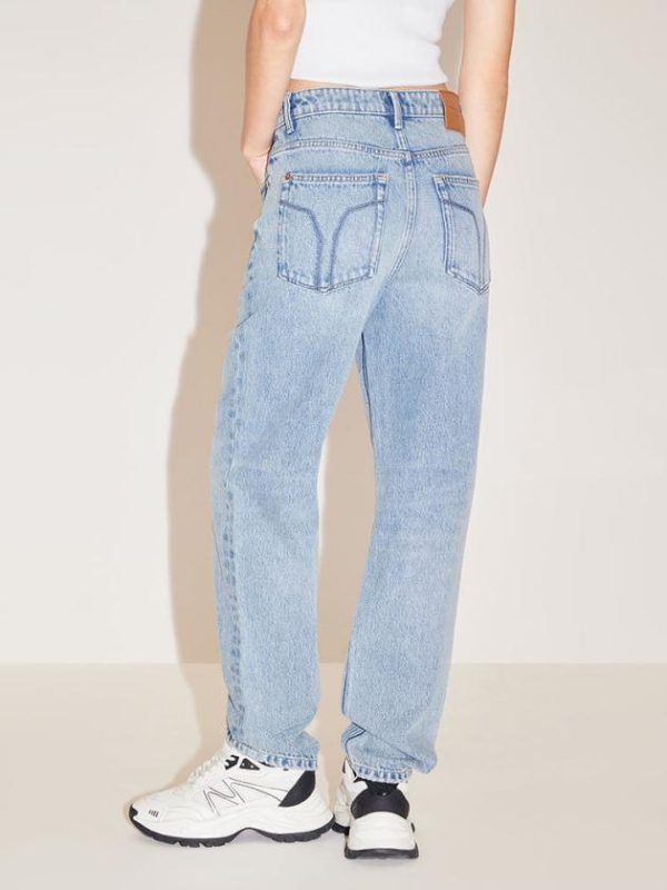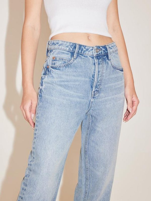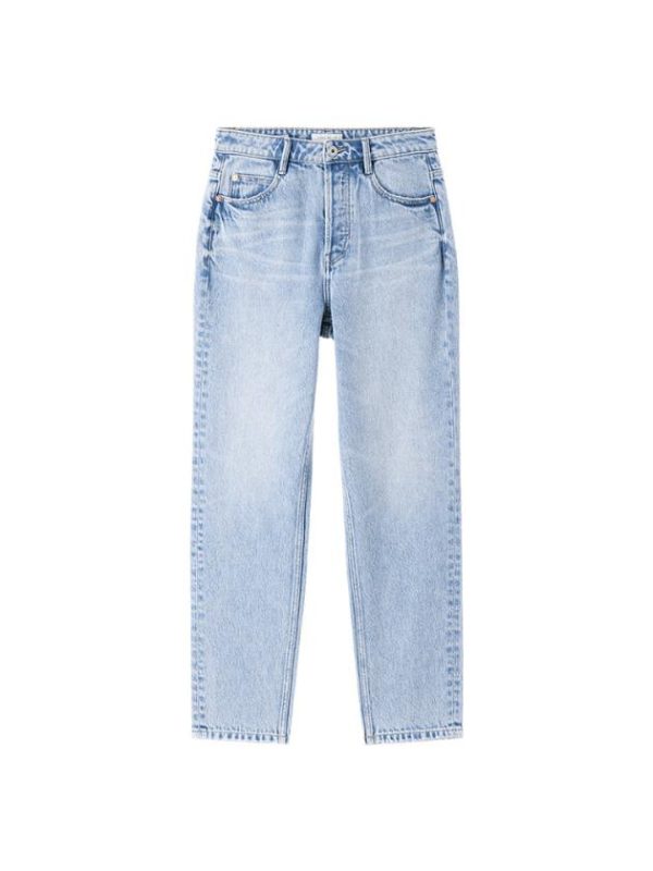 Carefully selected pure cotton denim fabric provides a soft and comfortable feel, offering a sturdy and stylish upper body appearance. Crafted with nostalgic washing techniques, each piece presents a unique charm. The combination of V-shaped york lines and double-stitched pockets enhances the contour of the hips. The distressed details on the pant legs add a distinct touch to each pair.