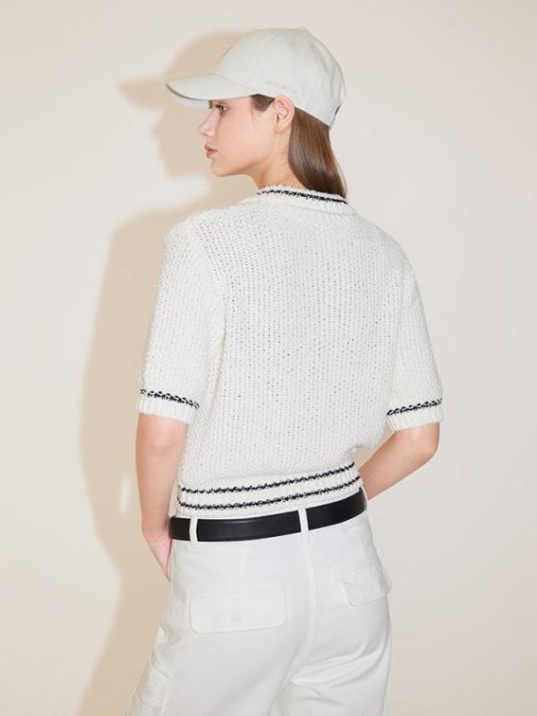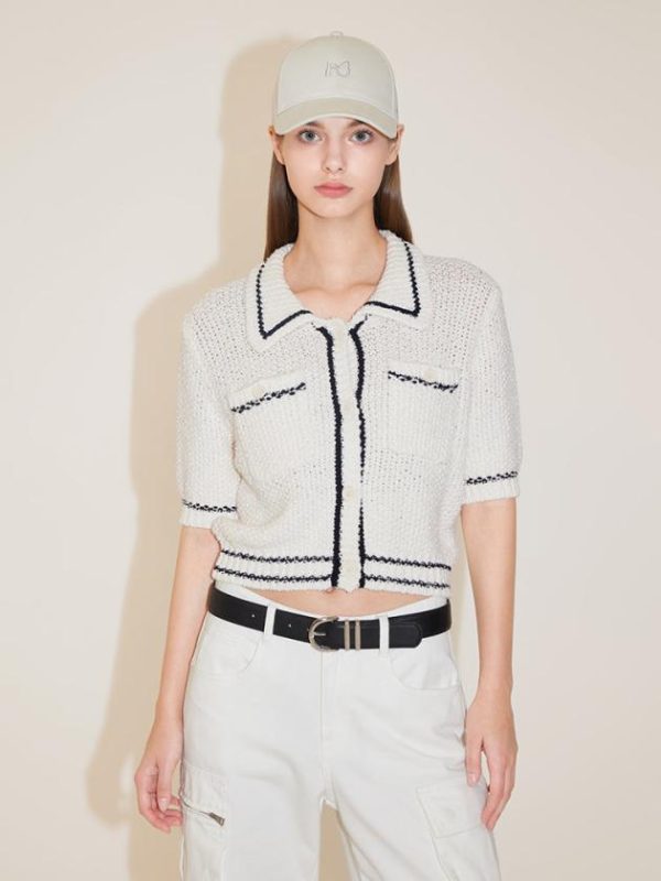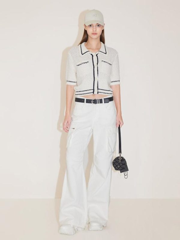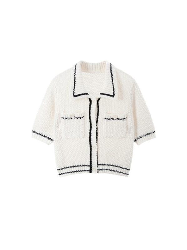 Using a blend of natural silk, linen, and cotton, this premium cotton yarn features delicate and clean texture, providing comfortable and skin-friendly wear. Designed with a classic shirt collar, it exudes a confident and capable style. The addition of side patch pockets adorned with shiny buttons adds a touch of elegance. The loose-knit cuffs with ribbed trim offer both comfort and style.