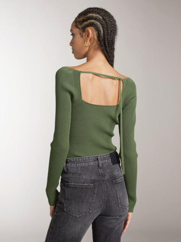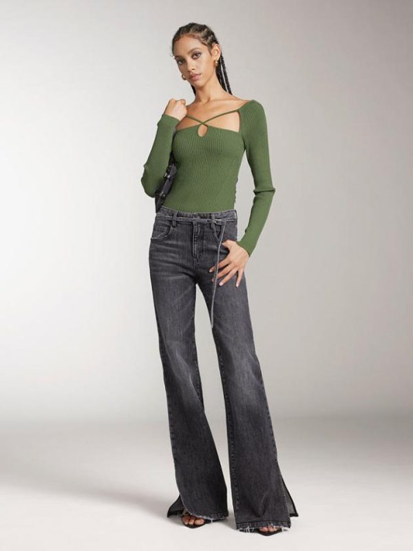 Crafted from high-quality Elite crepe yarn fabric, this material offers excellent elasticity and recovery, ensuring that garments made from it have a superb feel and drape. The fabric is highly colorfast with a vibrant, wearable finish and a natural sheen that adds a touch of sophistication. The design features a cross-tie neckline that offers just the right amount of skin exposure, enhancing its sensual appeal. The ribbed cuffs are sleek and structured, accentuating the slim lines of the arms. The stretchy ribbed fabric comfortably hugs the skin, providing a flattering fit without feeling tight.