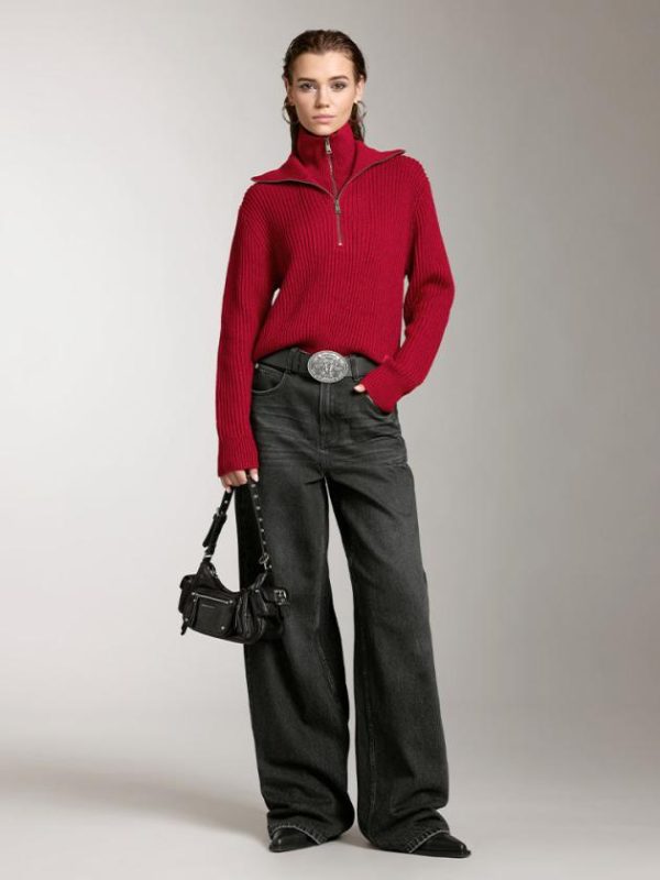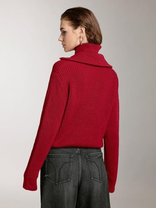 Crafted from a blend of lightweight, fluffy wool and acrylic fibers, this wool-blend fabric offers a soft, drapey feel with a smooth, delicate texture. The comfortable stretch creates a flexible, resilient texture, providing a warm and structured wearing experience. The unique faux-layered, double-collar design with a half-button placket adds a touch of Italian chic style. A woolen label at the hem enhances the garment’s refined, modern appeal. The ribbed cuffs provide a comfortable fit and a slightly gathered shape, adding a polished, clean look.