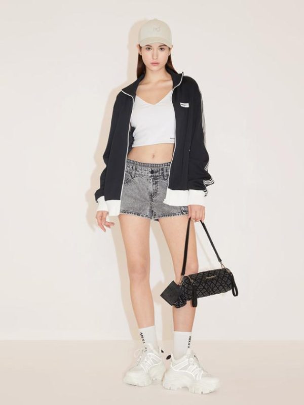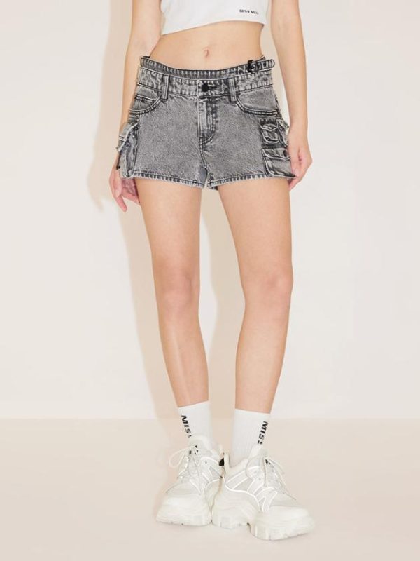 Vintage cotton fabric with a rugged texture, creating a structured and stylish garment with rich wash effects. The deconstructed cut-out design allows for adjustable high-waisted styling, accentuating sensual charm. Featuring multiple utility pockets and a black-gray stone wash, creating a cool and handsome piece. The V-shaped tailored York lines enhance a sexy silhouette.
