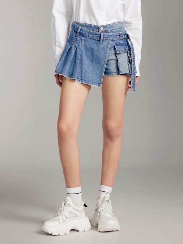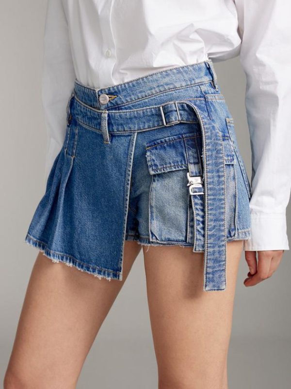Acetate fiber, treated with special processes, provides a smooth and comfortable feel, and when blended with Lyocell fiber, it enhances the softness and skin-friendly quality of denim, achieving a slim fit without being tight. The adjustable front panel design embodies a deconstructed aesthetic, showcasing a minimalist beauty. The unique branded label adds to the brand’s identity while elevating the overall sophistication. The utilitarian-style pocket design, with metallic clasps, brings a fashionable and avant-garde feel, expressing individuality to the fullest.
