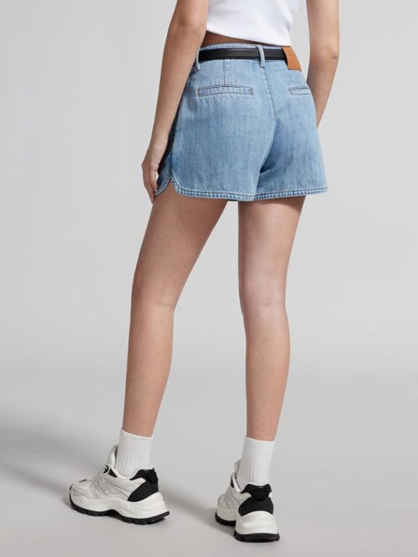 Carefully selected denim fabric containing Tencel provides a drapey and smooth hand feel, ensuring comfortable wear. The design features diagonal side pockets, combining comfort with practicality. The logo embossing technique adds a vivid effect, complemented by the brown leather label for added value. The small slits at the trouser legs allow for easy movement, exuding a casual and carefree vibe.