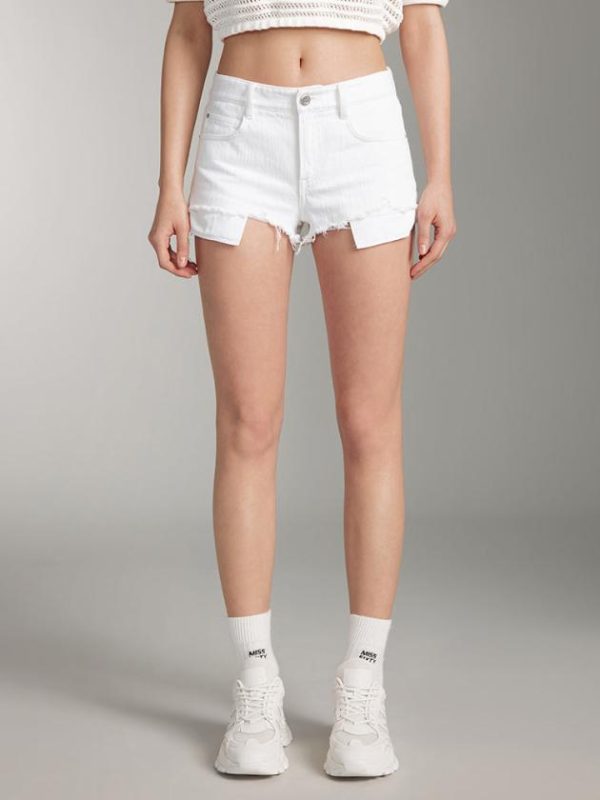 Crafted from premium long-staple cotton, with its long fibers and fluffy texture, it weaves denim fabric with intricate texture. The all-cotton composition gives the fabric a soft feel, while the special bamboo joint texture blends nostalgia with comfort. The classic mid-rise silhouette comfortably wraps around the waist and abdomen, adorned with brand-customized buttons on the front placket for added texture. The V-shaped yoke seam combined with patch pocket design creates a three-dimensional and lifted look, complemented by textured leather patches for added depth. Irregular slits and distressed frayed details add individuality to each piece, creating a high street taste that’s truly unique.