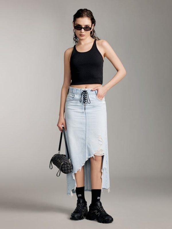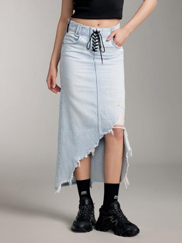 Miss Sixty Skirts | Women Denim Long Skirt With Asymmetrical Hem
