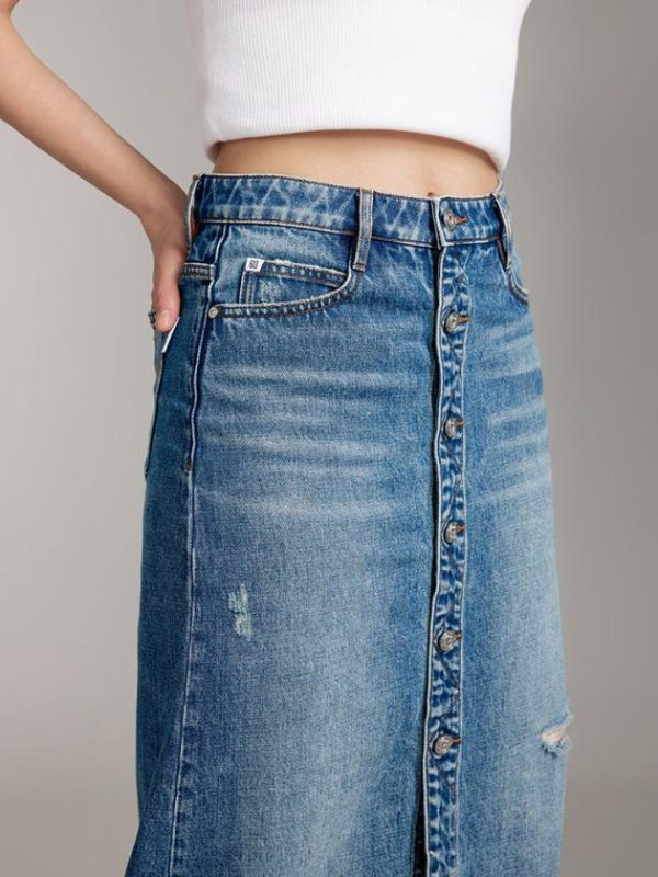 Made with Egyptian cotton fabric, featuring a distinct bamboo-like texture in the weave, with clear thread lines, smooth and delicate to the touch, and a natural vintage color tone. The comfortable mid-rise cut is accentuated with irregular distressing at the waist, adding uniqueness to each piece. The cool and edgy handmade distressing design presents a different vintage style in each piece. Double-stitched patch pockets with irregular distressing treatment
