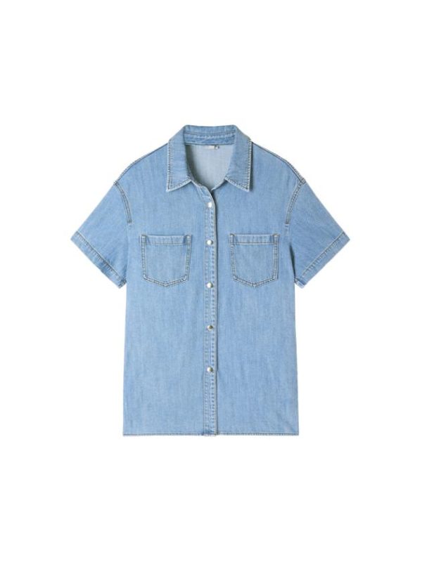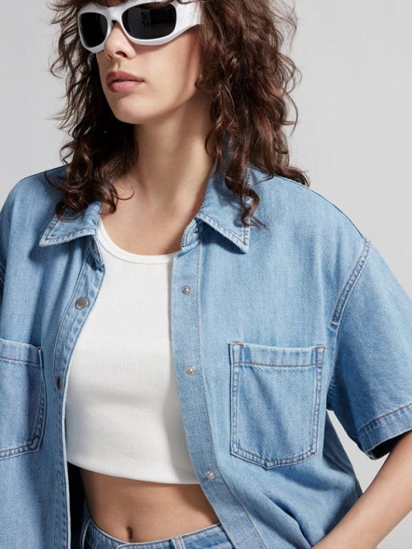 Carefully selected denim fabric containing Tencel, with the addition of Lyocell, giving the denim a smooth and silky drape, providing a comfortable and refreshing feeling when worn. The refined shirt collar, with a buttoned placket, enhances a neat appearance. Symmetrical pockets add detail, combining practicality with aesthetics. Slanted side pockets are simple yet effective, contributing to a sleek and comfortable hem.