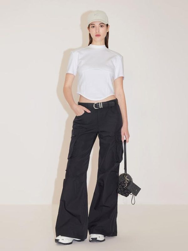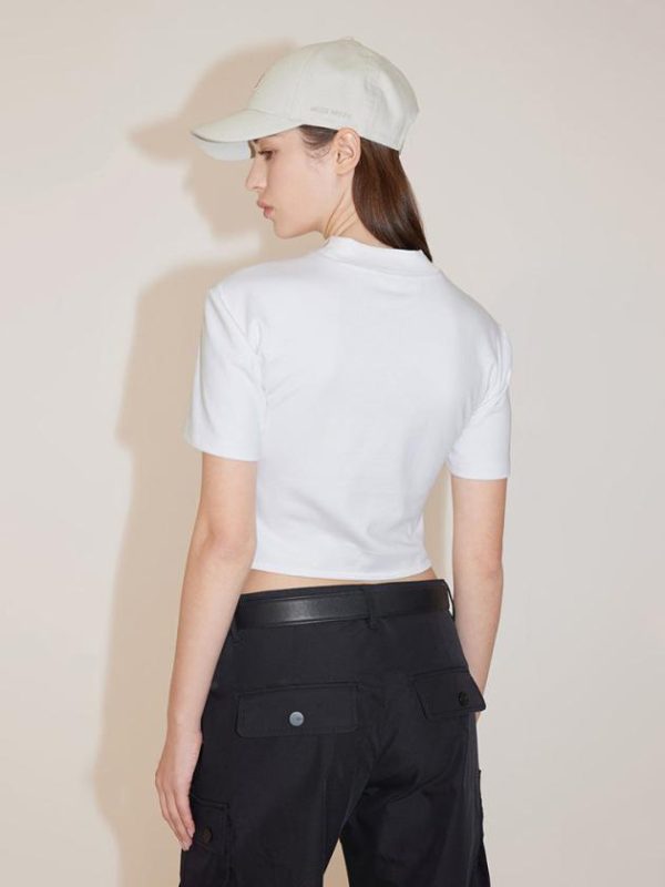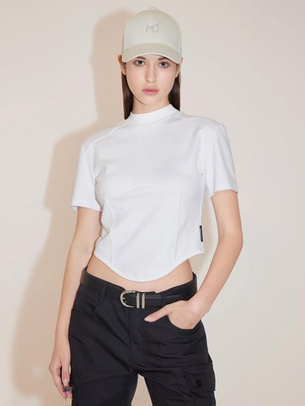 Selected double-sided knit fabric, with a comfortable and soft texture, the fabric surface shines softly like silk, with a natural drape. The semi-high round neck design is simple and fashionable, highlighting elegance. The regular shoulder fit short sleeves are sleek and stylish. The fishtail-shaped hem cut releases a sexy charm.
